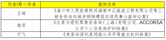 近日,全国法律专业学位研究生教育指导委员会公布第五批法律硕士专业学位文字教学案例评审结果,我院王琦教授团队撰写的《海口市人民检察院诉海南中汇疏浚工程有限公司等三被告非法向海洋倾倒建筑垃圾民事公益诉讼案》、杨芳教授团队撰写的《左某与爱利琴商务咨询(上海)有限公司、ACCORSA公司个人信息保护纠纷案》和亓飞副教授撰写的《李某诉深圳某网络公司平等就业权纠纷案》3项教学案例经专家评审及全国法律专业学位研究生教育指导委员会审议,成功入选“中国专业学位案例中心案例库”。